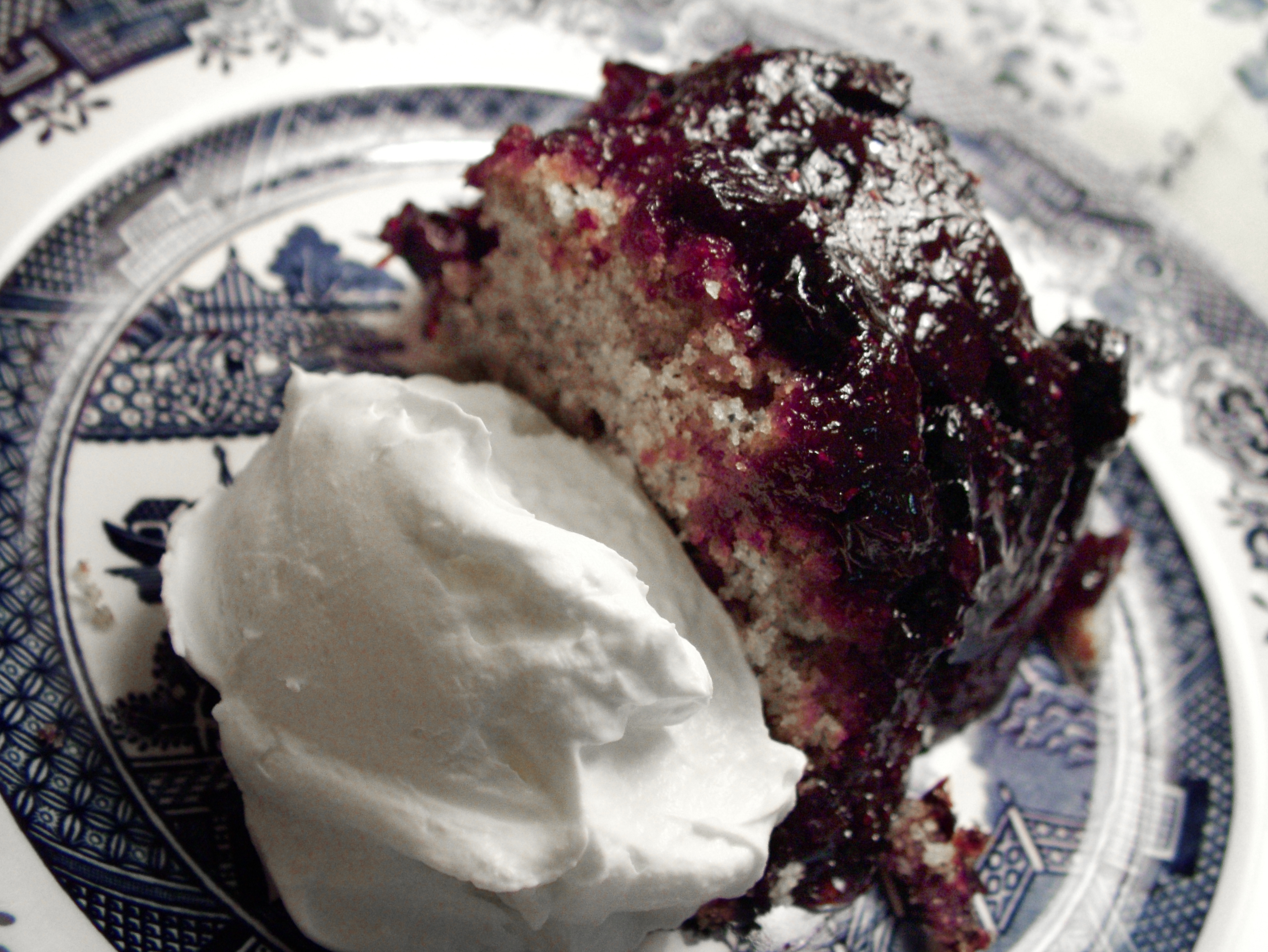 Upside Down Blues Cake with Sweet Cream
